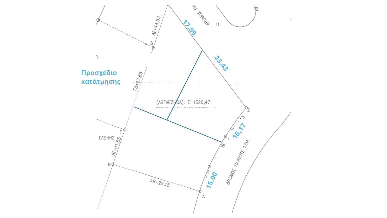 ΚΕΝΤΡΟ, Οικοπεδο 1.326 τ.μ., εντός σχεδίου πόλεως, ασφαλτος, επιτρεπόμενο ύψος 11 μ., πλάτος δρόμου 12 μ., συντελεστής δόμησης 0,80, συντελεστής κάλυψης 70,00, έχει δυνατότητα κατάτμησης, άρτιο και οικοδομήσιμο. Το ακίνητο είναι γωνιακό , με πρόσοψη σε τρείς δρόμους . Δυνατότητα κατάτμησης σε 3 οικόπεδα με τιμή 45.000 / οικόπεδο